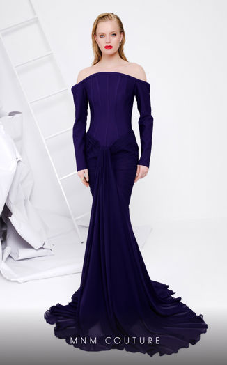 MNM Couture Style B1103 - Graceful Crepe Off-Shoulder Gown